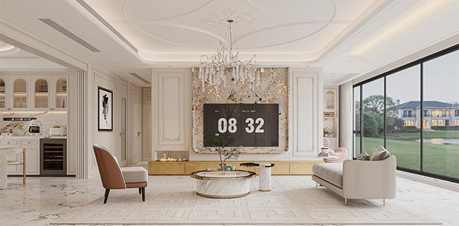 本案坐落于—廣州北郊白云區帽峰山附近,房屋為農村自建房,擁有優渥的自然景致,面向潺潺流水,背后云霧幽山。在這樣的場所里思考設計,從中汲取靈感,重新審視空間與自然的關系,希望能夠在繁華與自然的雙重訴求中,筑起遠離都市、靜謐私享的心靈歸所。 設計以“沐林度假”為設計理念,在空間中呈現出宜居性與度假感相結合的私墅,使城市獨有的人文氣息納入依山傍水的環境背景,以獨有的方式實現精神上度假。 設計將原有右側整體斜面墻體玻璃做矯正處理,矯正后使室內空間方正實用,功能布局上,將這個四層住宅進行功能劃分,打造出以私人聚會和家庭娛樂、工作洽談等綜合性的功能空間。隨后打破空間中的隔閡,使之蛻變成成一個有機的生活聚合體。 明凈的落地窗外是波光粼粼的絕美水景,大面積玻璃框住“動”的景色,日夜交替成一幅至美景觀圖,清新自然的景致為室內營造一抹輕盈無壓的氣息,渲染精致優雅的意式氛圍,靜享慢生活。