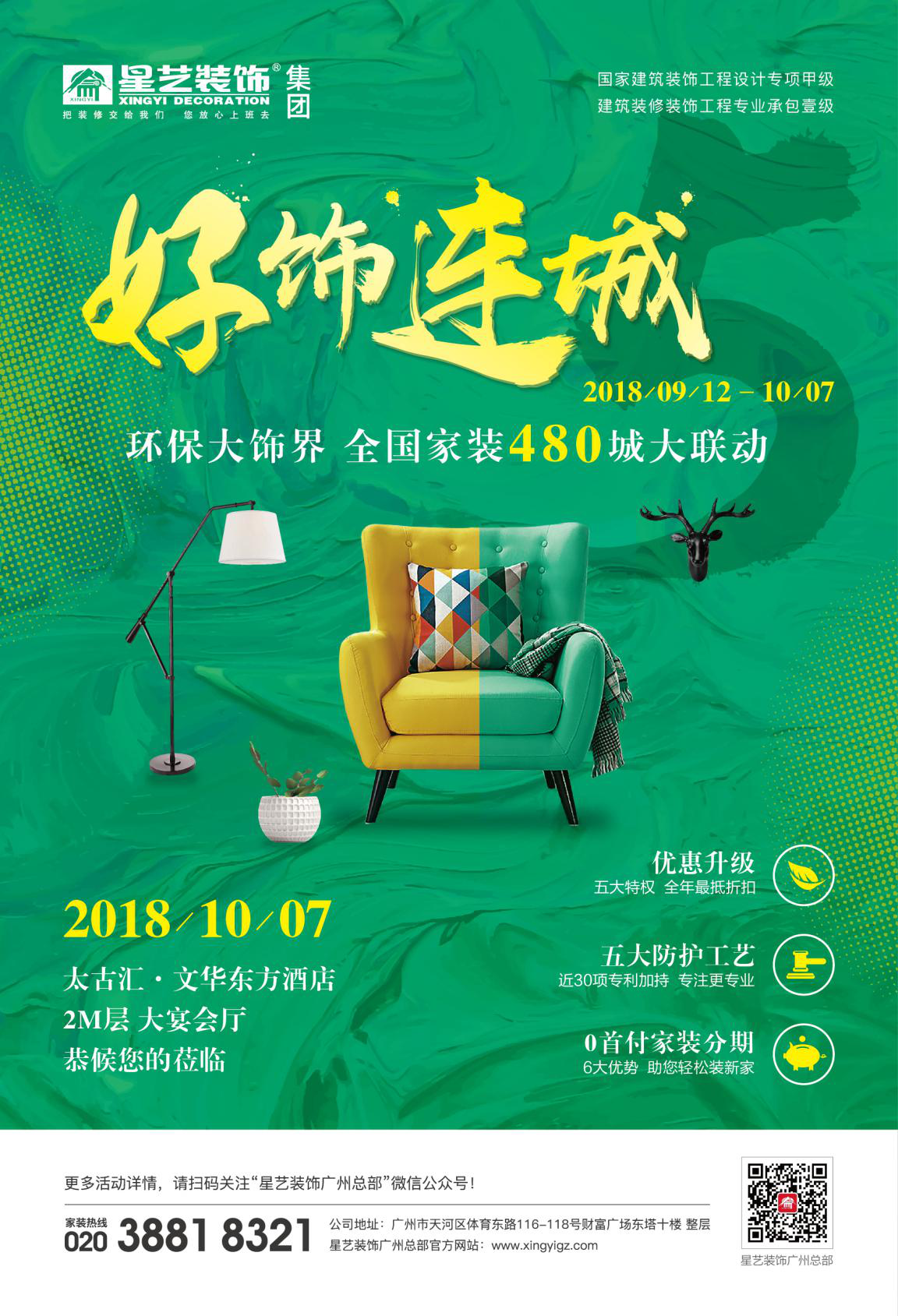 9月1日至10月7日,星藝裝飾好飾連城5,環(huán)保大飾界,全國家裝480城大聯(lián)動。您想要的年度裝修鉅惠,重磅來襲,10月7日文華東方酒店恭候您的蒞臨!