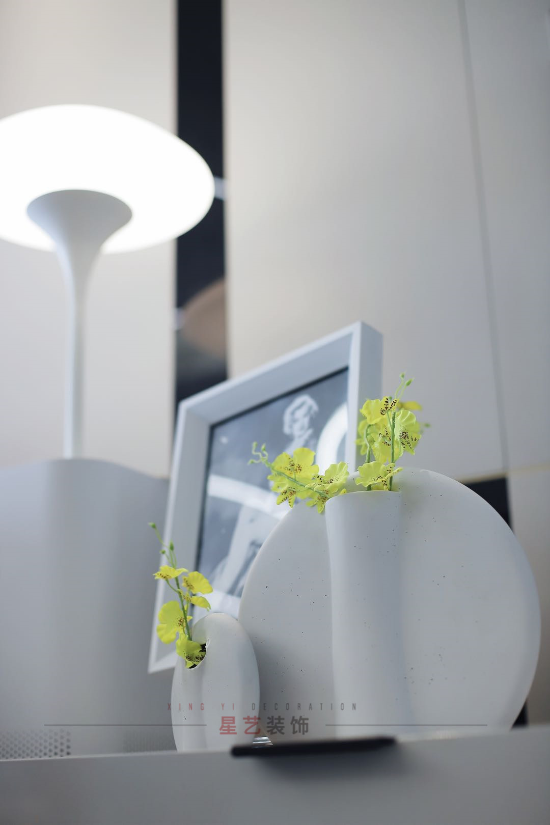 主臥主要打造一種平和靜謐獨立空間,利用極佳的地理優(yōu)勢,在站在落地窗前每天都能看到不一樣的珠江風景,視野開闊。床頭上坊還有玻璃碎片拼圖,不需要太多的裝飾,房間也不會顯得空落落的。