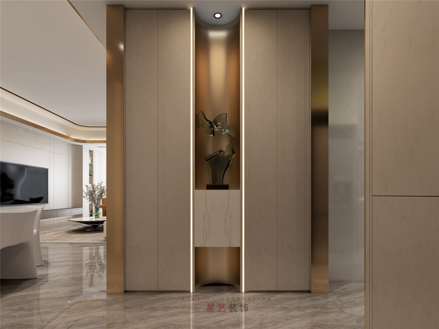進(jìn)入玄關(guān),暖白柔和的燈光溫潤細(xì)膩