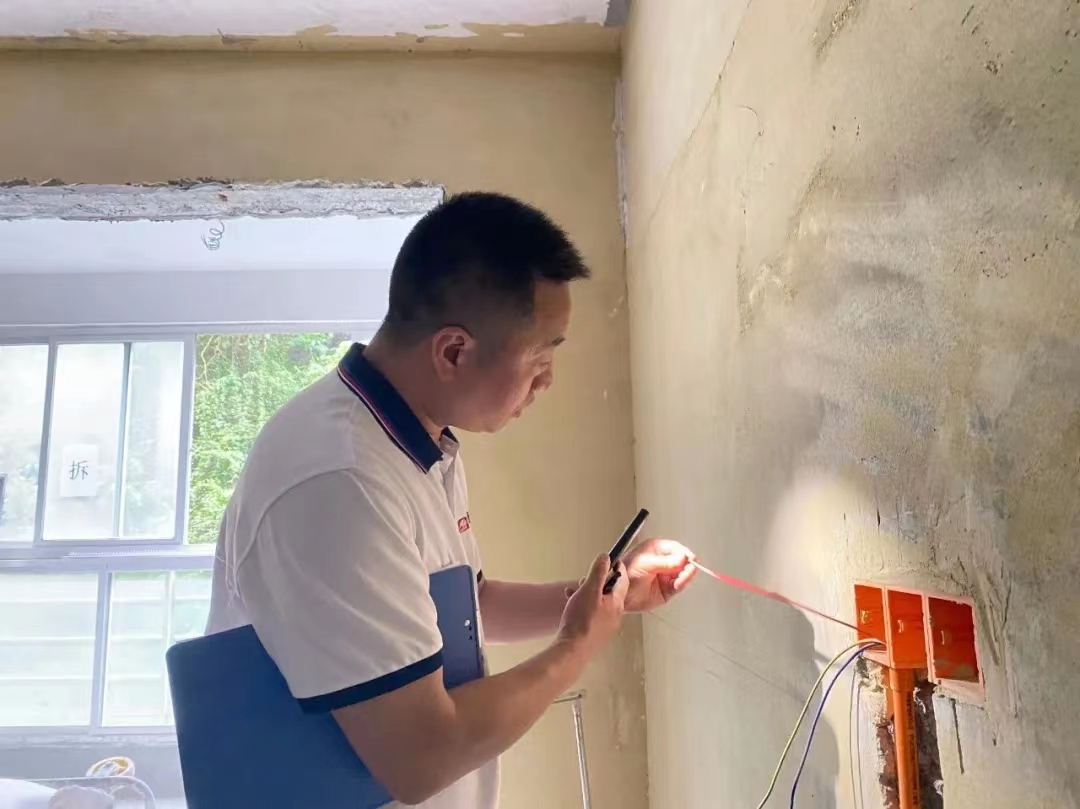 墻面平整度和水電改造查驗(yàn)都是必不可少的環(huán)節(jié),線槽均勻美觀、深度適等都極為重要,墻面垂直度偏差小于3mm符合標(biāo)準(zhǔn),而一張100元人民幣約為0.1mm,非常直觀!