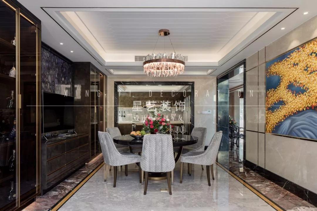 本次案例為港式輕奢風(fēng)格,。越尊貴的居所,越需要多元的休閑區(qū)來滿足社交需求,所以設(shè)計師以“自然&藝術(shù)”為主題構(gòu)思設(shè)計,最大限度地優(yōu)化建筑平面拓展空間,讓室內(nèi)空間尺度闊綽從容,形成豐富而遞進(jìn)的空間場景。